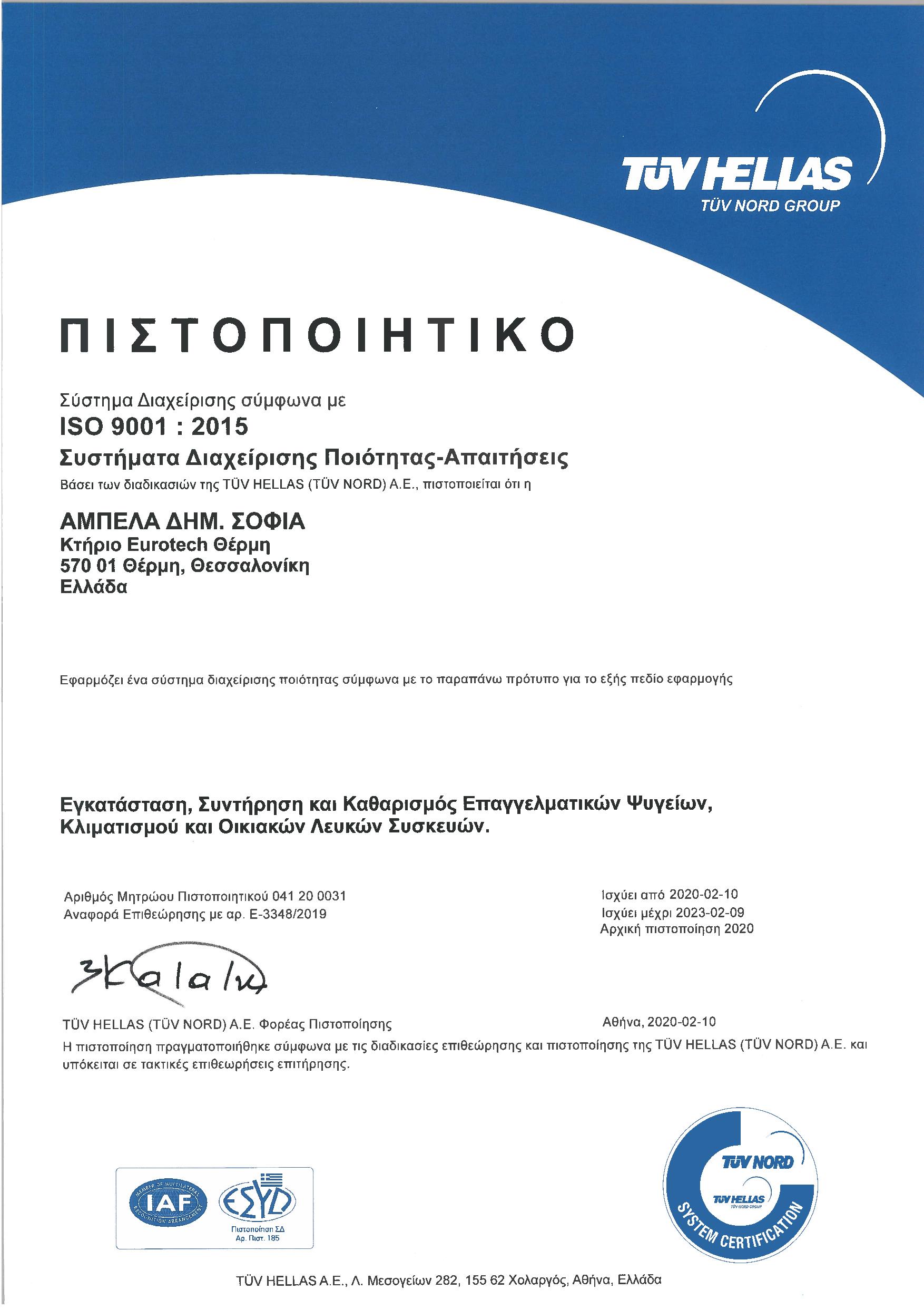 Πιστοποιητικό ISO 9001:2015 Σύστημα Διαχείρισης Ποιότητας
